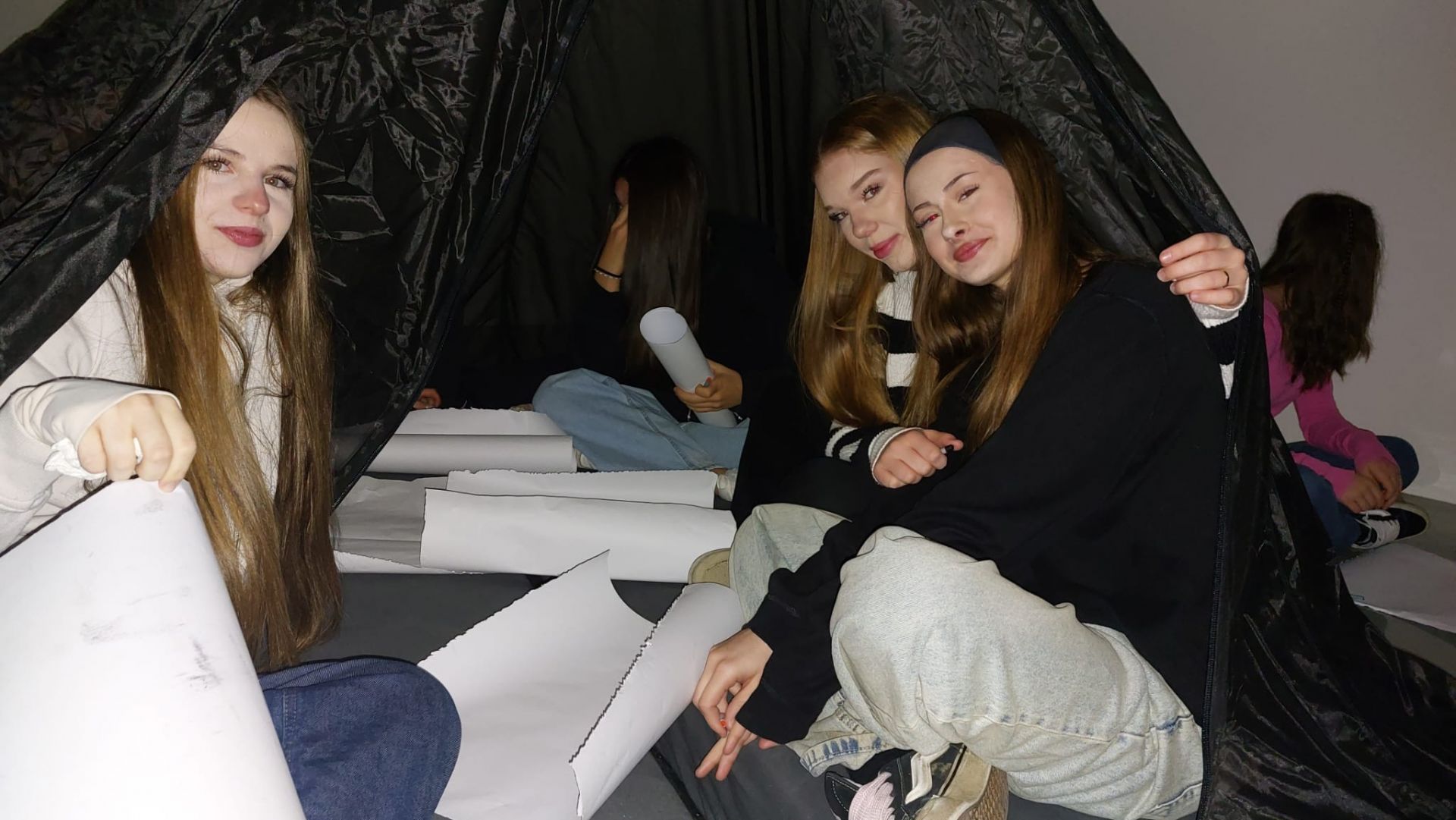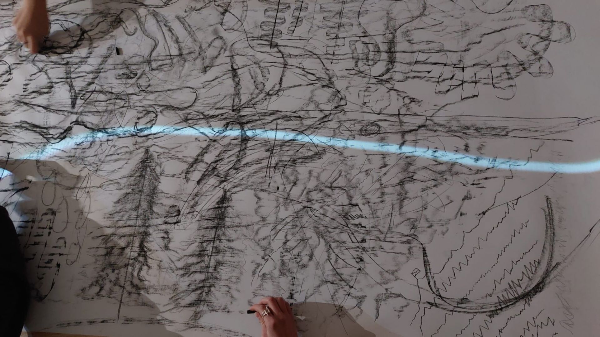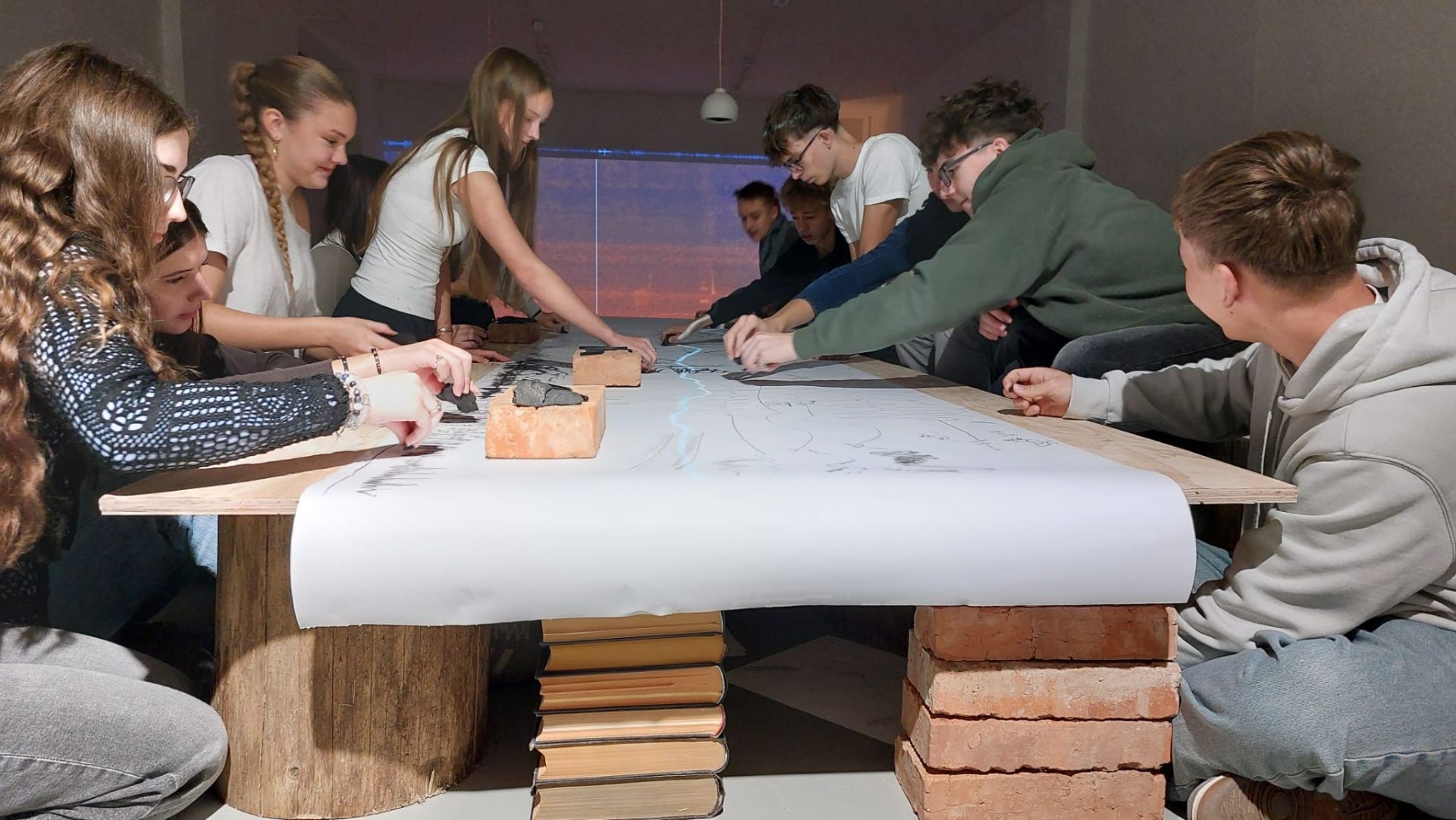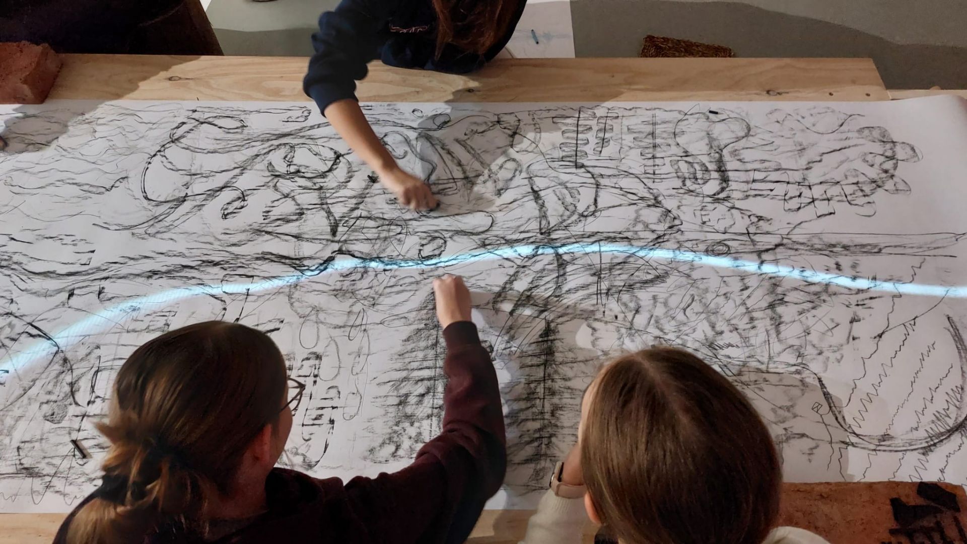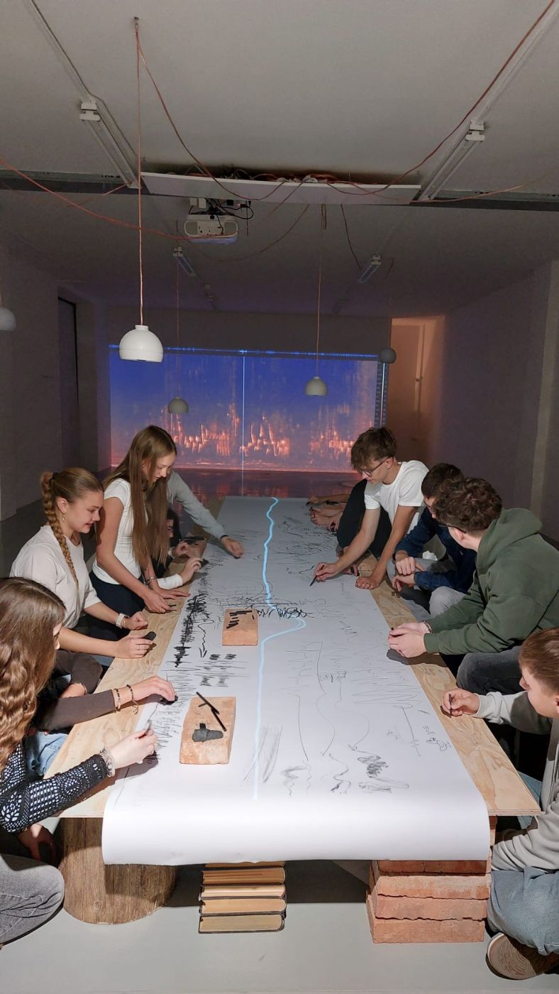Zvukovou skladbu a vizuální záznam spektogramu návštěvnictvo z gymnázia a základních škol doplnilo na edukačních programech kresbou a tvorbou talismanů.