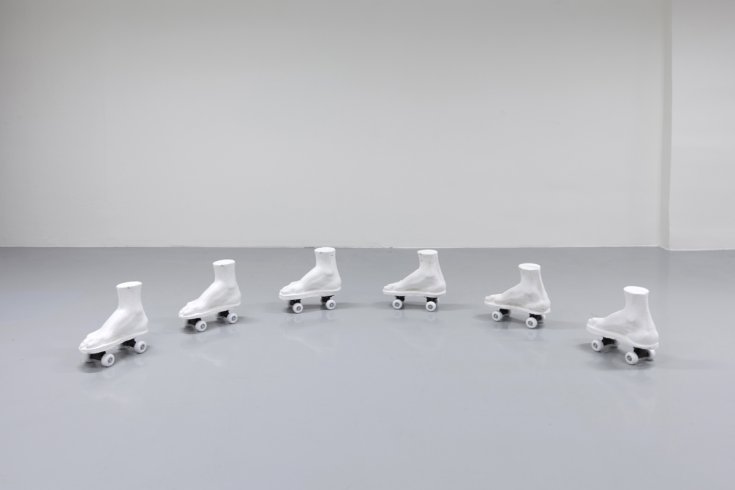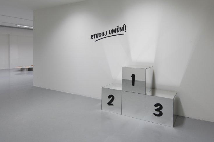 Výstavu Too Much Too Soon Katarína Hládeková s Ondřejem Homolou koncipovali jako instalační celek, v němž se jednotlivé artefakty ocitají na pomezí mezi rekvizitami, sloužícími jako opora celkového narativu, a autonomními uměleckými díly, z nichž většinu bychom mohli označit jako sochy. Individuální rukopisy obou umělců (pro Katarínu je charakteristická konceptuální i řemeslná důslednost, Ondřej rád pracuje s náznakem, zkratkou a vtipem) se prolínají již na úrovni jednotlivých objektů. I celou instalaci můžeme bez váhání označit jako dialogickou. Nebo snad dialektickou? Všechna „díla-rekvizity-modely“ odkazují k leitmotivu umění jako hry či spíše specifické sportovní disciplíny s vlastními pravidly a institucemi. Umělecké školy, galerie, rezidence – ty všechny jsou prostoupeny étosem soutěžení; nacházíme v nich kouče a porotce, připravené nabídnout návod na úspěch nebo verdikt o tom, jestli úspěchu bylo (nebo může být) dosaženo. Zmíněná dialektika souvisí s tím, co se v postmoderním slovníku označilo jako dvojí kódování. Výstavu lze číst jako výsledek studia samotných umělců a vystavené artefakty jako modely či ukázky pracovních postupů a strategií současného umění: instalace, ready made, DIY... Zároveň se na ni však můžeme dívat jako na zcela autonomní, vyzrálý projev, tedy jako na něco, co si samo zasluhuje být předmětem studia a snad i následování.